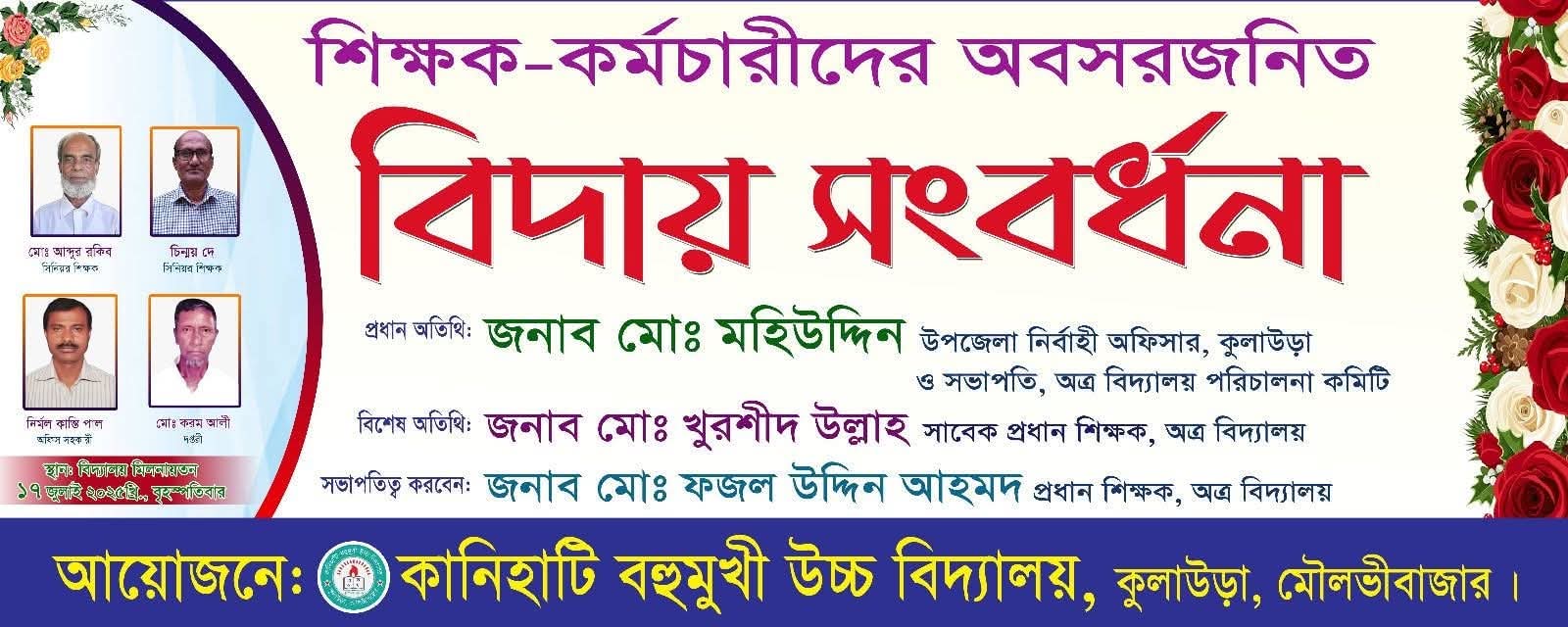 বিদ্যালয়ের সিনিয়র শিক্ষক হেলাল আহমদ এর উপস্থাপনায় বিশেষ অতিথির বক্তব্য রাখেন কানিহাটি উচ্চ বিদ্যালয়ের অবসরপ্রাপ্ত প্রধান শিক্ষক, বিশিষ্ট শিক্ষাবিদ মোঃ খুরশীদ উল্লাহ, মৌলভীবাজার জেলা অ্যাকাউন্টস অ্যান্ড ফাইন্যান্স অফিসার এখলাছুর রহমান, কুলাউড়া উপজেলা মাধ্যমিক শিক্ষক সমিতির সাধারণ সম্পাদক ও কুলাউড়া বালিকা উচ্চ বিদ্যালয়ের প্রধান শিক্ষক আব্দুল মতিন, হাজীপুর ইউনিয়ন পরিষদের ভারপ্রাপ্ত চেয়ারম্যান নুর আহমদ চৌধুরী বুলবুল, উত্তর কুলাউড়া উচ্চ বিদ্যালয়ের প্রধান শিক্ষক মাহমুদুর রহমান কবির, পতনউষার স্কুল অ্যান্ড কলেজের অধ্যক্ষ ফয়েজ আহমেদ, পাইকপাড়া এম এ আহাদ আধুনিক কলেজের অধ্যক্ষ মোঃ হানিফ, কমলগঞ্জ সরকারি মডেল উচ্চ বিদ্যালয়ের সাবেক প্রধান শিক্ষক রনেন্দ্র কুমার দেব, হোছন আলী উচ্চ বিদ্যালয়ের প্রধান শিক্ষক বীরেশ রুদ্র পাল।