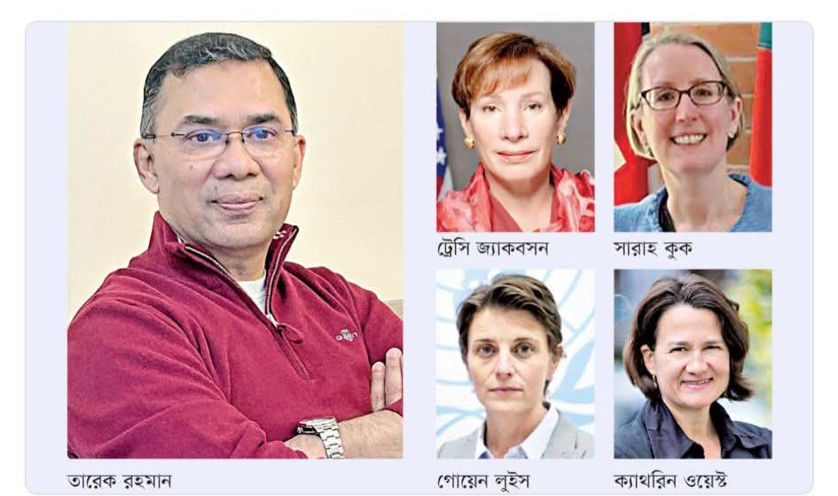 জানা গেছে, সাম্প্রতিক সপ্তাহগুলোতে লন্ডনে তারেক রহমানের সঙ্গে বৈঠক করেছেন কাতারের একজন মন্ত্রী। এ ছাড়া বৈঠক করেছেন ব্রিটিশ পররাষ্ট্র, কমনওয়েলথ ও উন্নয়ন বিষয়ক দপ্তরের ইন্দোপ্যাসিফিক বিষয়ক পার্লামেন্টারি আন্ডারসেক্রেটারি অব স্টেট, ব্রিটিশ এমপি ক্যাথরিন ওয়েস্ট, ব্রিটিশ কনজারভেটিভ দলের গবেষণা উন্নয়নবিষয়ক সাবেক পরিচালক রজ ক্যাম্পসেল, ঢাকায় নিযুক্ত ব্রিটিশ হাইকমিশনার সারাহ কুক, যুক্তরাষ্ট্রের চার্জ দ্য অ্যাফেয়ার্স (সিডিএ) ট্রেসি অ্যান জ্যাকবসন, ঢাকায় জাতিসংঘের আবাসিক সমন্বয়ক গোয়েন লুইস প্রমুখ।