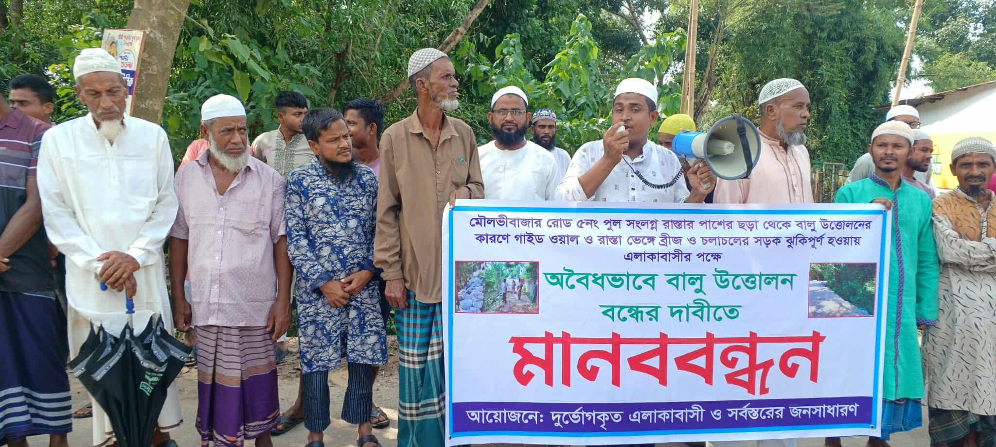 মানববন্ধনে বক্তারা জানান, দীর্ঘ ২০-২৫ বছর ছড়াটিতে কোনো সরকারি ইজারা ছিল না। তবে গত দুই বছর ধরে ইজারা দেওয়ার ফলে বালু উত্তোলন শুরু হয়। এর কারণে রাস্তা ও গাইডওয়াল ভেঙে পড়েছে। শ্রীমঙ্গল-মৌলভীবাজার আঞ্চলিক মহাসড়কের ৫ নম্বর ব্রিজের নিচ থেকে বালু তোলার ফলে সরকারি স্থাপনাটিও এখন হুমকির মুখে পড়েছে।