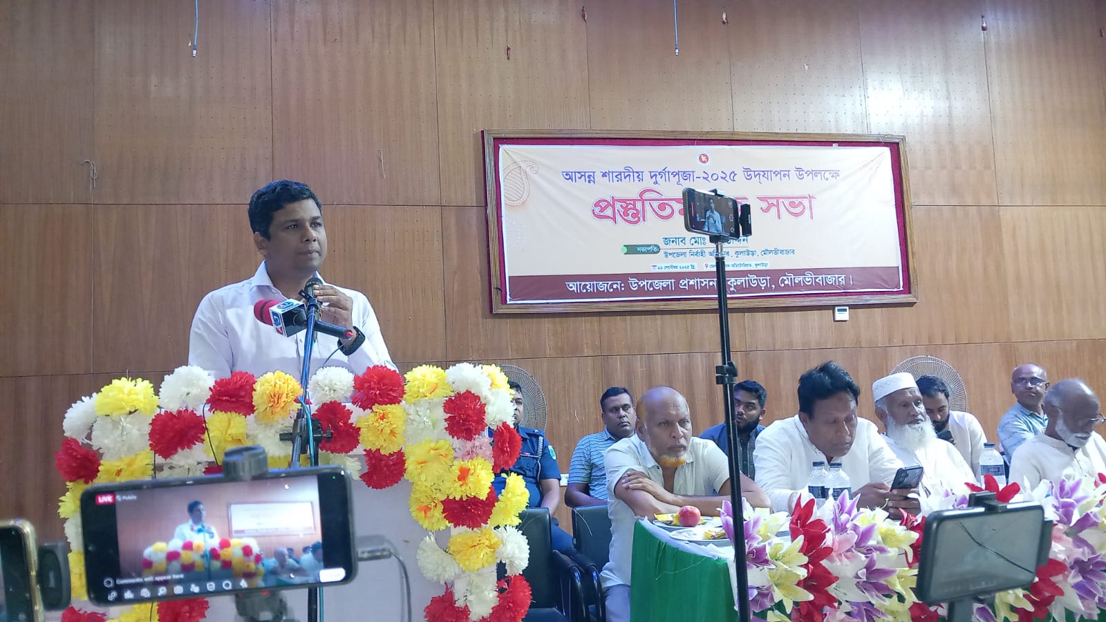 মৌলভীবাজারের কুলাউড়া উপজেলায় সার্বজনিন ২শ টি সহ মোট ২শ ১৫ টি পূজা মান্ডবে শারদীয় দূর্গাপূজা উদযাপনের সকল প্রস্তুতি সম্পন্ন করেছে প্রশাসন। ইতিমধ্যে পুলিশ প্রশাসনের পক্ষ থেকে সকল পূজা কমিটির নেতৃবৃন্দ,রাজনৈতিক নেতৃবৃন্দের সাথে পূজা শান্তিপূর্নভাবে উদযাপনের লক্ষে সভা করা হয়েছে। উপজেলা নির্বাহী অফিসারের পক্ষ থেকে সকল চেয়ারম্যান,পুজা উদযাপন পরিষদের নেতৃবৃন্দের সাথেও বৈঠক সম্পন্ন হয়েছে। পূজা নির্বিঘ্নে উদযাপনের লক্ষ্যে প্রশাসনের সকল বিভাগের সমন্বয়ে ব্যাপক উদ্যোগ গ্রহন করা হয়েছে।